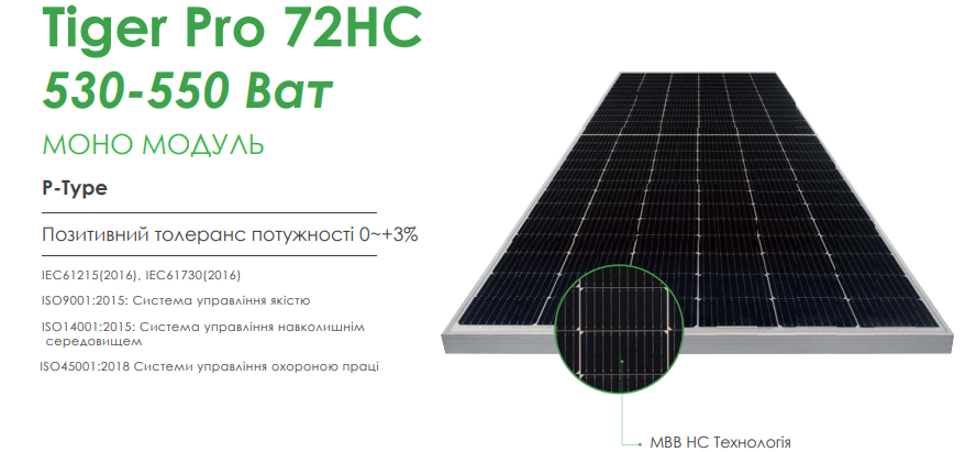 Солнечная панель JKM-550M-72HL4-V представляет собой высокоэффективный монокристаллический модуль от ведущего мирового производителя Jinko Solar. Основными преимуществами являются на 26% большая мощность по сравнению с обычными модулями и более низкий внутренний ток и температура горячей точки.