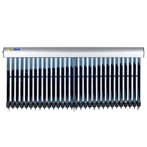 Вакуумный солнечный коллектор балконного типа Altek SC-LH2-30 состоит из 30 тепловых трубок с диаметром конденсатора 14 мм, предназначенных для нагрева воды в системах горячего водоснабжения. Рекомендуется для подогрева воды объемом от 100 литров. Вакуумные солнечные коллекторы рекомендованы для круглогодичного использования во всех регионах Украины. КПД составляет до 95%. Солнечная система на этих коллекторах работает под давлением. Теплоизоляционным материалом в этом типе коллектора является минеральная вата.
