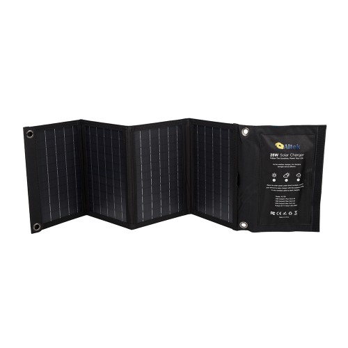 Монокристалічна сонячна панель ALTEK ALT-28 потужністю 28Вт з трьома виходами USB є оптимальним варіантом для мандрівників, рибалок, мисливців і всіх кому важливо мінімальна вага та компактні розміри при максимальній ефективності. За допомогою даної панелі можна заряджати павербанки, смартфони, смарт годинники, без дротові навушники та інші малопотужні пристрої. Панель дуже компакта та легка, без проблем можна покласти її у внутрішню кишеню рюкзака, кофр мотоцикла і навіть в розкладеному стані не займе багато місця в надувному човні.