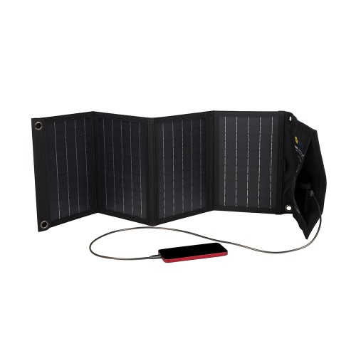 Дана сонячна панель, гарний вибір для людей котрі полюбляють активний відпочинок на природі, та зможе забезпечити електроенергією ваші електропристрої від сонячної енергії в польових умовах.